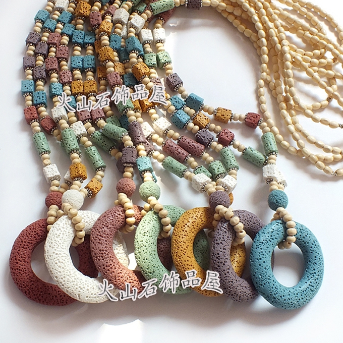 火山石毛衣链 新款 服饰配饰复古民族风彩色长款项链饰品批 发