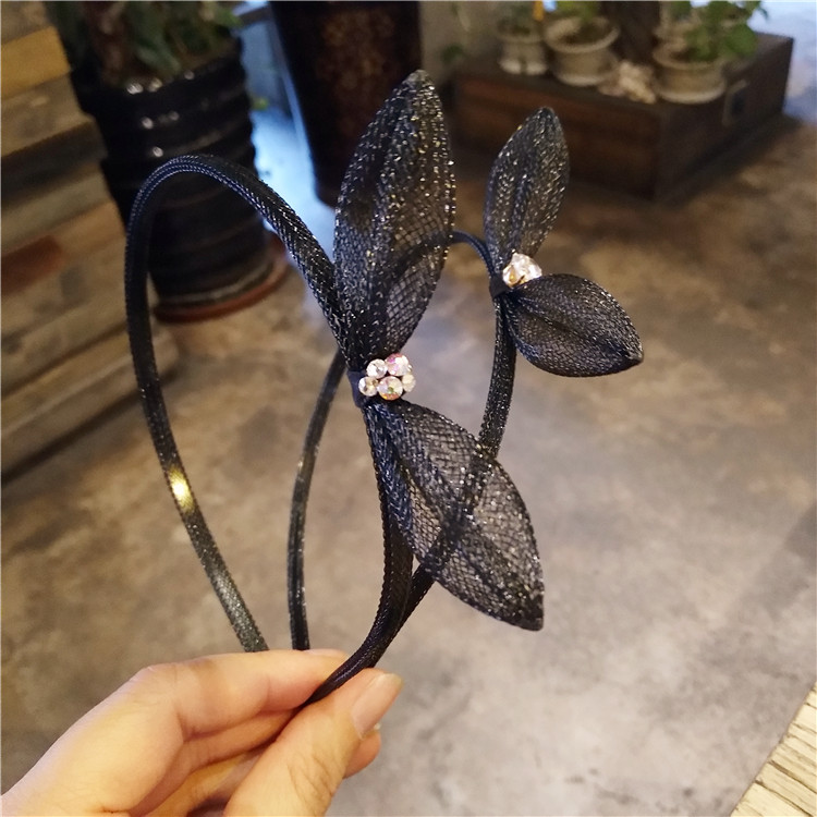 方钻气质丝绸质感黑色大蝴蝶结发夹发饰头饰边夹少女顶夹ins发卡