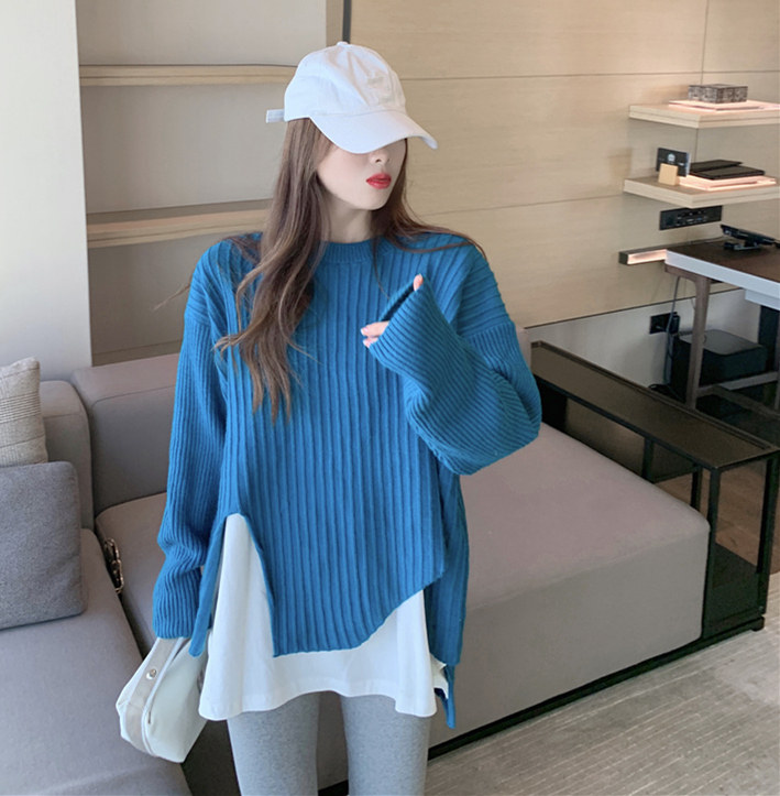2021年秋冬季新款 时尚潮流设计感不规则假两件套拼接毛衣 包邮热门设计联盟服务商